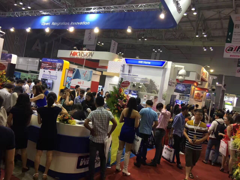 2017年8月中旬上海申哲參加越南安防展,越南展會(huì)是個(gè)比較小型的展會(huì),越南當(dāng)?shù)氐膮⒄股毯苌伲瑧?yīng)該沒(méi)有外來(lái)參展商數(shù)量多,但是現(xiàn)場(chǎng)的人流量還是挺多的。